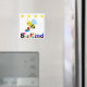 La palabra de "Bee Kind" con una abeja linda que lleva un corazón con rompecabezas de autismo para crear conciencia sobre la comprensión y el respeto a la diversidad y la inclusión.