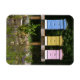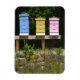 Este imán presenta coloridas colmenas de la granja Lavender Pond en Killingworth, Connecticut.