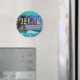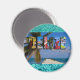 Muestra a todos tu amor por el país de Belice con este imán brillante y divertido que contiene fotos de Ambergris Caye, Caye Caulker y ruinas mayas. Se impone un magnífico colaje de colores sobre una playa tropical desenfocada, con palmeras y un muelle. El fondo contiene una imagen de un hermoso océano azul.