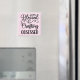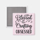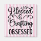Este imán "Blessed & Crafting Obssed" está escrito en escritura negra sobre un fondo rayado rosado.