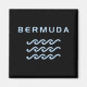 El diseño estilizado muestra tres olas oceánicas o acuáticas y la palabra "Bermudas" arriba en un texto moderno y fresco. El diseño es todo azul. Diseño náutico minimalista para surfistas, yates, barcos, marineros, nadadores, buceadores en las Bermudas. Para los bermudeños, visitantes, marineros y turistas, buscando un recuerdo fresco.
