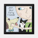 Una persona cariñosamente sostiene la cara de un perro amarillo mientras se miran. Un gato esmoquin se inclina sobre el brazo de la persona. Este es un dulce y caprichoso ilustracion de cómo amamos a nuestros mascotas y cómo se convierten en nuestros amigos. Estos BFF son "los mejores amigos peludos". Imagen perfecta para cualquier amante de los animales, una oficina veterinaria o cualquier organización o rescate mascota. Diseño original de Christie Black de Creations from the Heart.
