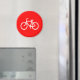 Sencillo símbolo de bicicleta en blanco y rojo.