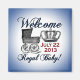 Cochecito de madera de época y corona real con "Bienvenida al bebé real" en azul y blanco. Un gran recuerdo del bebé Royal británico que nació el 22 de julio de 2013. Celebre el nuevo nacimiento con esta atractiva parafernalia memorable del nuevo niño Royal Baby a William Windsor y Kate Middleton.