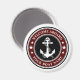 Un imán redondo elegante, negro, blanco y rojo profundo, con un ancla náutica personalizado con estrellas y tu texto personalizado de "Welcome Aboard" y tu nombre de barco u otro texto deseado. Personalizar con tu color de fondo favorito y mucho más. Hace un gran regalo para cualquier ocasión.