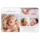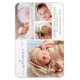 Anuncie la llegada de su bebé con este simple y moderno imán de anuncio de natalidad de collage de fotos. El diseño presenta un collage de cuatro fotos de tus fotos favoritas de bebés con tipografía gris. Personalice el nombre de su bebé, la fecha de nacimiento, las estadísticas de nacimiento y los nombres de sus padres. El imán es de 15 cm por 15 cm.