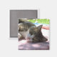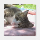Este imán cuadrado de refrigerador de la cocina tiene un gato querido llamado Big Boy que fue abandonado en estado salvaje por su familia, atrapado, neutralizado y liberado. Se le ve en esta foto tendida sobre una mesa en nuestro patio trasero donde le damos de comer y donde recibe sus dosis diarias de amor y atención. ¿Quién puede resistir a este adorable gato de tabby con una nariz rosada, un cuello blanco y una punta de oreja recortada? Este imán seguramente tocará el corazón de cualquier amante del gato.