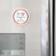 Un imán de agradecimiento con un diseño de boda moderno - labios rosados glamurosos y una ilustración de bigote masculino con estilo retro. Puesto en un fondo de Chevron melocotón con un círculo superpuesto encima. El círculo tiene un borde de gradiente de rosa dorado. El texto dentro dice Sr. y Sra. y puedes personalizar con tus nombres y fecha de boda.