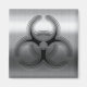 El símbolo de riesgo biológico en una textura realista de acero cepillado, de corte, de capas.