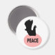 Este imán presenta una silueta negra de una lujosa paloma con un ojo blanco, sentada en un nido ovalado rosado con la palabra paz escrita en negro en el centro del nido. El fondo es blanco, pero puede cambiarse a cualquier color que desee haciendo clic en el botón "personalizar". Este imán sería genial para la nevera o el lavavajillas. Recuerden a la familia que un poco de paz de vez en cuando no sería malo.