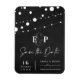 Black White String Luces Monograma Boda Guardar La Invitación Magnética De La Fecha . Enviar esta elegante Boda de las luces de las cuerdas de Chalkboard Guardar la invitación magnética de la fecha a la familia y amigos. Una manera perfecta de anunciar al boda. Se puede personalizar completamente cambiando las iniciales del monograma , los nombres de la novia y de Groom , Fecha boda . El diseño tiene un fondo de pizarra falso con luces de cuerda. Para cualquier personalización adicional, no dude en ponerse en contacto conmigo en mypaperlove2021@gmail.com