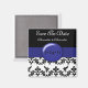 Este patrón de damasco blanco y negro de bonito Salven los imanes del boda de fecha son una forma elegante y bonito de recordar a sus amigos y familia que reserven la fecha para su día de boda. El diseño presenta un patrón de damasco negro sobre blanco en la mitad inferior del imán. En el centro hay una banda azul real con un botón brillante azul real como el diseño. La mitad superior es negra sólida. Hay texto con letra de script en blanco que dice Guardar la fecha y se puede personalizar con sus nombres y la fecha de su boda. El Damasco Blanco y Negro con Azul Real Salven los imanes de fecha son un recordatorio práctico y divertido!