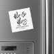 These custom magnets feature a simple black and white design with a clean white background and crisp black fonts for a timeless look. “Mr. & Mrs” appears in large handwritten script, paired with a classic serif font for a balanced and elegant style. At the bottom, the couple’s last name and wedding date are displayed for a meaningful finishing touch.