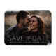 Un imán moderno para guardar la fecha que muestra tu foto de compromiso favorita con "Guardar la Fecha" en una simple superposición de fuente blanca complementada con una elegante escritura en caligrafía. Personaliza el imán de la foto para guardar la fecha agregando tus nombres, fecha de la boda y ubicación de la boda.