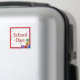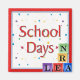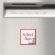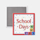 El diseño divertido y colorido presenta salpicaduras de pintura multicolor y bloques de alfabeto cuadrado que hechizan Aprender. El texto dice Días escolares en rojo. Acento de borde azul y rojo.