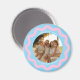 Imán Blue and Pink Wavy Circle Photo Frame with Text