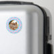 Personalize this circle magnet with your photo and descriptive text to create one of a kind magnet gifts for friends, parents and grandparents. The wavy line bottle cap style squiggle is chic and trendy in light shell pink on a sky blue background. Create your own custom magnet by using the blue edit design button to change the colors and fonts to suit your style completely.