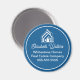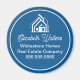 These professional realtor magnets are custom made with your real estate company name under the modern white cursive script and house image. These elegant blue realty business promotional item labels feature a house logo image for home builder or realty agent company marketing.
