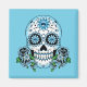El Día de los Muertos cráneo de azúcar con rosas y corazones en tonos azules.