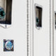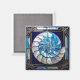 The Blue/White Faux Stained-Glass Nautilus Shell 2 magnet features a beautiful nautilus shell in blues and pearl white on a background of blue. This beautiful magnet has a stained-glass look with trim in antique silver.