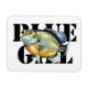 Pocas cosas se comparan con atrapar a un pez grano de losa como un glúteo. Imagen detallada a todo color de un glúteo azul con el texto apilado BLUEGILL en un tipo de letra de plantilla en el fondo.