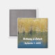 Dé a sus invitados un toque único de su día de bodas con estos imanes personalizados. Este imán natural hermoso presenta una foto de altos pastos marrones y verdes a lo largo de la orilla del lago reflejados en el agua azul. Los nombres de la novia y del novio y la fecha del boda aparecen en el agua con letras blancas. Personalice fácilmente estos conservadores rústicos bodas en la pantalla de pedido.