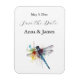 Un encantador imán Save the Date con una delicada libélula acuarela con vibrantes alas iridiscentes en tonos azules, amarillos y rojos, añadiendo un toque caprichoso y elegante. El texto está muy bien diseñado en una combinación de fuentes romanas Emeline y Garamond, combinando sofisticación moderna con clasicismo atemporal. El fondo suave, blanco roto o marfil realza el efecto acuarela etéreo, creando una estética onírica y romántica. Perfecto para bodas y ocasiones especiales, este pegatina capta la belleza de la naturaleza con un estilo refinado y artístico.