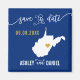 Usted eligió un lugar especial para su boda. Ahora es el momento de celebrarlo con este toque de queda, guardar el imán de fecha, con un mapa de siluetas. Para mover el corazón al lugar de su boda, haga clic en personalizar y luego en "personalizar".