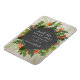 Una boda salva el imán de fecha con un diseño botánico tropical con un diseño geométrico de pizarra sobre un fondo de ladrillo blanco.