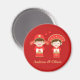 El diseño viene con el personalizado de un lindo muchacho y chica vestido con un tradicional novio chino rojo brillante y dorado y disfraces de novias completados con piezas en la cabeza. El rojo es un color auspicioso en la cultura china. Hay que destacar que el oro al que se refiere aquí es una estrecha coincidencia del color y no brilla. Hace un regalo de bienvenida único para una boda o sólo para uso propio. Personalizar con nombres.