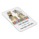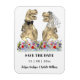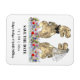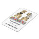 Deleite a sus invitados con este divertido imán de invitación de boda con tema de dinosaurios con novia y novio T-Rex parados en un prado colorido de flores silvestres. Fácil de personalizar con los nombres de la novia y el novio y la fecha de la boda. Ilustraciones divertidas de novia y novio T-Rex con tipografía moderna y caprichosa.
