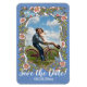 Esta boda azul de flor de maíz claro salva la tarjeta de imán de fecha con encantadores toques rústicos: un borde acuarela con rosas rosas rosas rosas y blancas, dos pintorescas aves, mariposas azules, hojas verdes de salvia y una cinta blanca gemela. El fondo azul se ve ligeramente texturado a lo largo de los bordes. ¡Añade una foto de la pareja! La tarjeta dice: "¡Guardar la fecha!" en un tipo de letra de script. Es fácil personalizar de las plantillas de fotos y texto usando las instrucciones de las líneas "Personalizar este diseño". Este diseño es rústico y romántico, con un ambiente rústico o casero. Artes y diseño originales, singulares y singulares de Tuzi Williams. Vendido sólo por Zazzle, con una garantía de cliente del 100%.