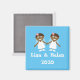Ilustracion de un compromiso o boda de una pareja gay. El color de fondo, los nombres y el año se pueden cambiar fácilmente.