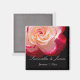 Atractivo imán boda de rosa blanco helado rojo con sus nombres y fecha.
