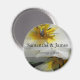 Atractivo cierre en vista del imán boda de lirios blancos personalizado con sus nombres y fecha.