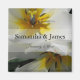 En el interior, se puede observar el imán boda de lirios blancos personalizado con sus nombres y fecha.