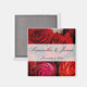 Atractivo imán boda de ramos de rosa rojo personalizado con sus nombres y fecha.