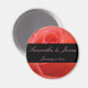 Atractivo imán rosa rosa blanco con puntas de color rosa personalizado con sus nombres y fecha.