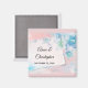 Imán Bodas de flores azules bonitas sobre fondo rosa