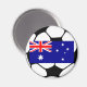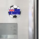 La majestuosa bandera nacional de Australia cubre parcialmente una pelota de fútbol.