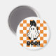 Trae un divertido "Boo!" a tu frigorífico con este encantador imán de Halloween. El diseño presenta un lindo gato negro y un fantasma contra un fresco fondo a cuadros. Una manera divertida de entrar en el espíritu de Halloween y agregar un toque tierno a tu cocina u oficina. Un gran regalo para los amantes del gato.