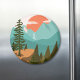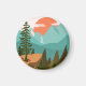 Presentamos nuestro imán de Bosque Abstracto Moderno, Montañas y Amanecer. Con ilustración de paisaje en estilo vintage. Adecuado como regalo para entusiastas de la naturaleza, el camping y el senderismo.
