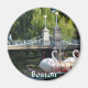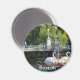 Refrigerador imán con los Swan Boats cerca del puente en el Boston Public Garden, Boston, Massachusetts.