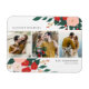 Muestra 3 de tus fotos favoritas con nuestro imán de fotos de vacaciones de Winter Botanicals. El imán de vacaciones incluye 3 fotos enmarcadas en blanco con ramos de flores rojas y rosas, hojas verdes y acentos dorados. Personalice los imanes fotográficos personalizados añadiendo un saludo personalizado, su nombre y el año.