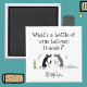 ¿Qué es una botella de vino entre amigos? Bueno, esa sería una botella de vino vacía. O dos, un vino tinto y el otro blanco, como en el ilustracion en este divertido imán frigorífico de El Gato Cabernet y su amigo que bebe vino blanco. Este sería un gran regalo para un amigo que comparte tu buen gusto en los buenos tiempos y buenas risas con sus amigos.