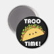 Un botón lindo con un delicioso taco con carne molida, lechuga, tomates y queso, sonriendo sobre un fondo negro entre las palabras "¡Tiempo Taco!" en blanco Bahaus 93. ¡Un regalo lindo para los amantes del taco, el arte pop japonés y los fans del kawaii humorístico!