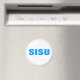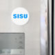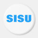 Botón lindo que muestra las características finlandesas de Sisu, o agallas, en negrita, letras azules.
