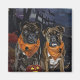Descanse el espíritu espeluznante con este inquietante diseño de Halloween que presenta una manada de perros bajo un cielo oscuro, iluminado por la luna, rodeados de bates voladores y calabazas brillantes. Perfecto para los amantes de la diversión con sus peludos amigos.