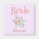 Este hermoso imán floral de novia presenta un fondo lila con un tipo de letra rosa que indica "Novia". Debajo hay bonitas flores rosas y azules. Luego hay un lugar para insertar tu nombre. ¡Compra el tuyo hoy!