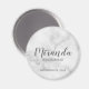 Añada un toque personal a su boda con el imán personalizado de dama de honor. Este imán presenta el nombre personalizado de la dama de honor en el estilo de letra de escritura moderna y gris con título y fecha boda en el estilo de fuente sans serif moderno gris sobre fondo de mármol blanco. También perfecto para la criada de honor, madre de la novia y más. Los detalles de mármol se simulan en las obras de arte. Este producto no será fabricado con mármol real.